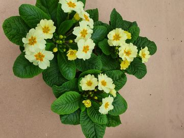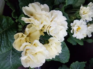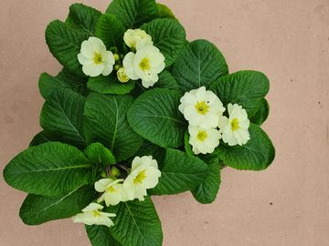 These primroses are a new variety they have large green foliage with a cream/light green flowers.