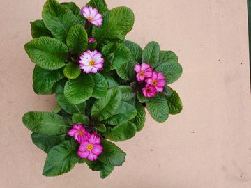 These primroses have individual flowers on a stem that, when picked, another bud grows. They have an unusual bronzy foliage and flowers with heart-shaped petals with fine darker edging, Colours may differ to the picture.