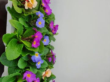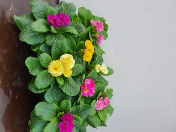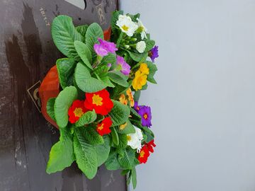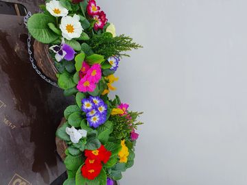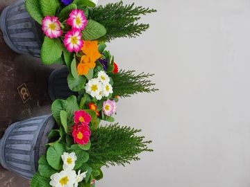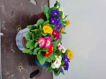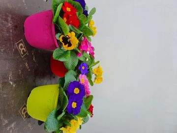 These colourful tubs come with primroses, polyanthus and pansies in.